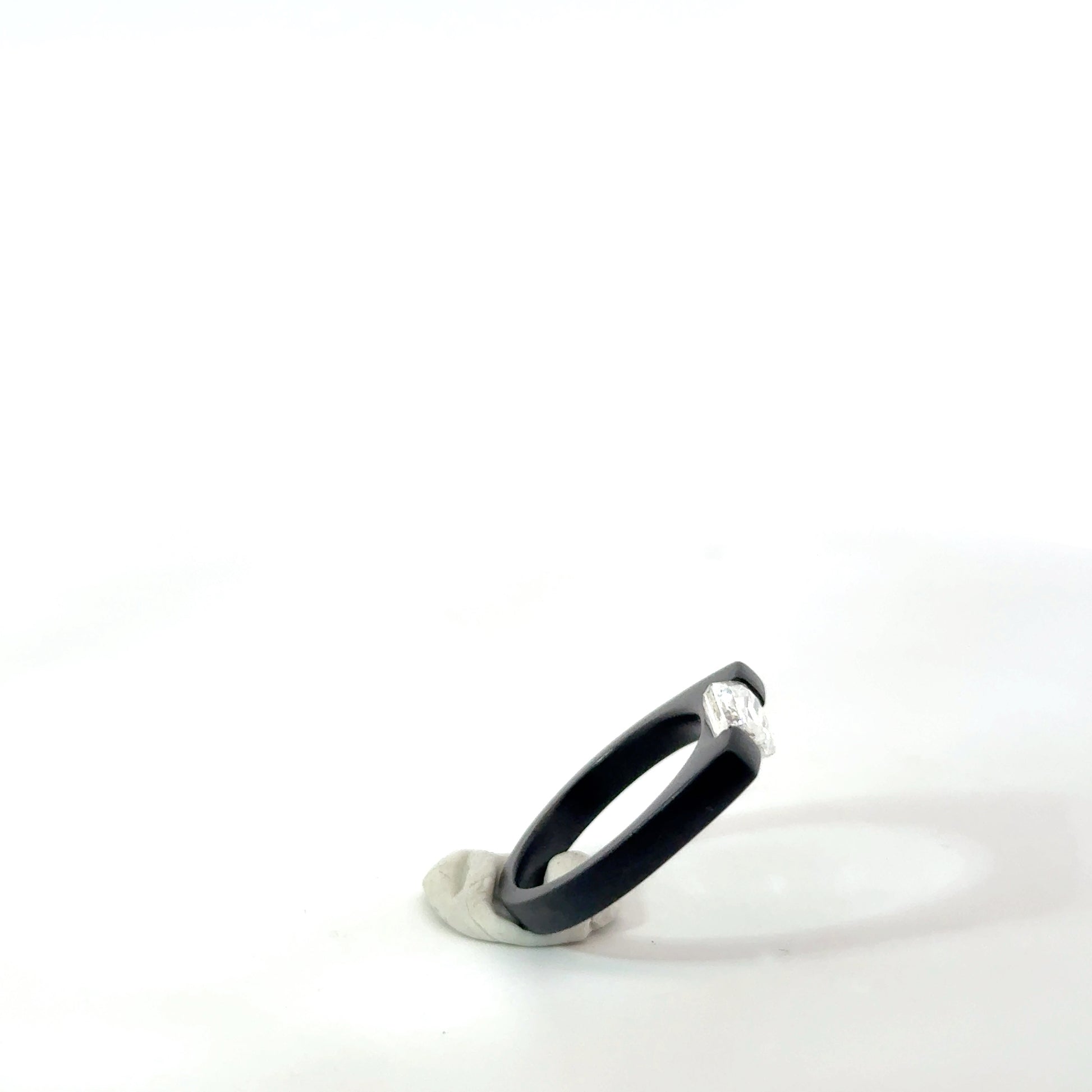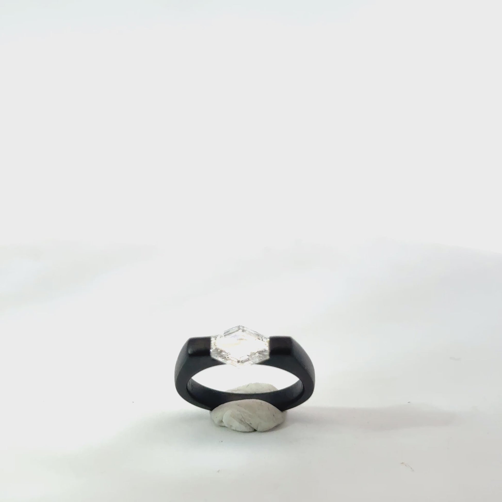 Platinum with 18K blackened gold, hexagonal step-cut diamond (1.50 cts, F/SI1)